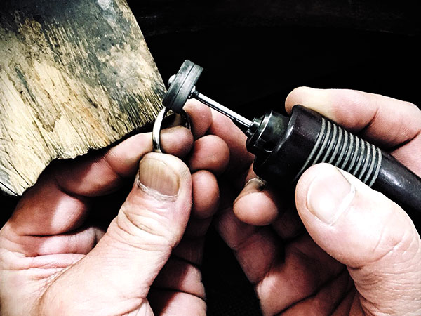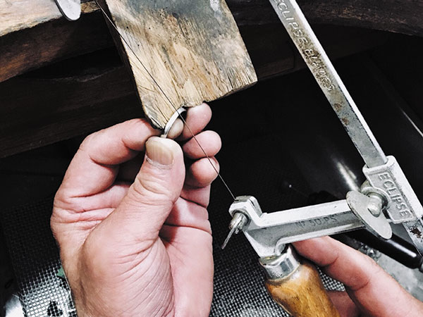 - 地金(金・プラチナ・銀など)のみのリングは、通常の修理工程で行うことができますが、石が付いていたり彫金されているリングは、サイズ直し後に復元工程が必要です。