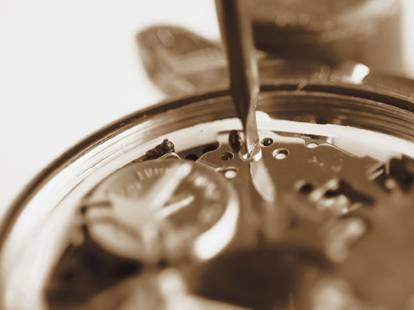 - 初めに時計のネジを外して全ての部品を分解し、古くなった油や汚れを洗浄します。そして新しい油を注しながら組み立てます。その際に痛んでいる部品等があれば、補修や交換をします。