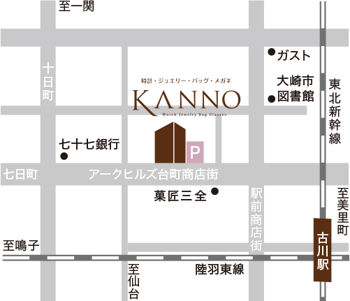 宮城県北部大崎市古川で創業から約90年。ジュエリー、時計、メガネなど、大人のためのファッションアイテムを取り揃えています。